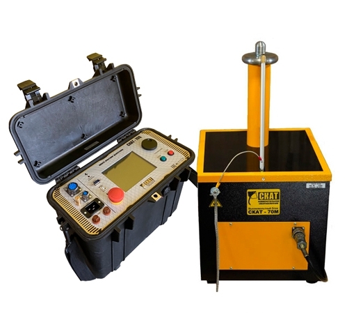 СКАТ-70Ц аппарат испытания диэлектриков цифровой (измерительный блок в кейсе, высоковольтный блок 70 кВ в металлическом корпусе)